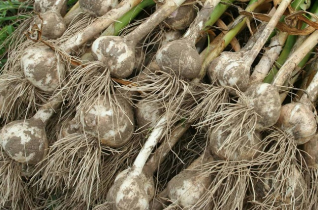 Обязательно нужно успеть до того момента, когда головка сверху начинает рассыпаться на зубчики. Если это случилось, такой чеснок храниться не будет. Что-то в переработку, что-то пойдет на посадку осенью. Кстати, есть такие садоводы, которые сажают не абы что, а сортовой чеснок? Какие сорта вам приглянулись?