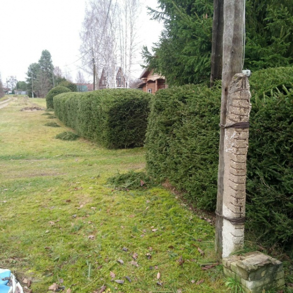 Прислал фото подписчик. На нем живая изгородь его соседа. Хвойная изгородь! Причем это не туя и не можжевельник, которые достаточно хорошо переносят стрижку и принимают любую форму. Это елка! И сосед принес саженцы из леса. Нашел местечко , где много елового подроста и накопал. Вообще, мне приходилось видеть живые изгороди из елей: похожая есть недалеко от Круговой панорамы на ВДНХ и в питомнике Вашутино, там есть еловая стена метров 5 высотой. Но это ель канадская, сортовая. А вот заборчик из нашенской лесной елки вижу впервые. У кого есть опыт формировки елей и...псевдотсуг, поделитесь. Очень интересно!