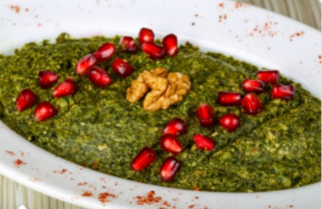 Готовый пхали выложите на блюдо и посыпьте зернами граната.
