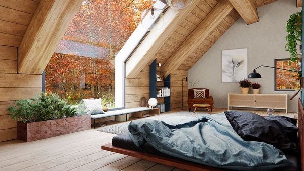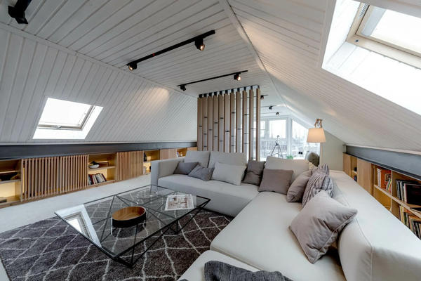 Этот тренд появился из-за особенностей мансард — конструкции крыши и разной высоты потолка. Небольшие помещения с низкими скосами дизайнеры не советуют делить на несколько маленьких комнат. Следует оставить пространство максимально открытым, для зонирования использовать легкие ширмы, стеллажи, невысокие комоды.