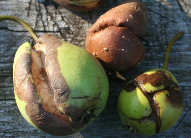 развиваются в питательной среде и способствуют загниванию плодов на дереве. За две-три недели они целиком поражаются болезнью и сами становятся спороносителями. Выпуклый сероватый налет на гнилых грушах – это вредоносные споры.