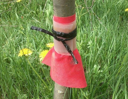 2. Пояса нужно накладывать до первого разветвления на штамбе, выше накладывать его бессмысленно, иначе часть насекомых обойдет препятствие по разветвлению.