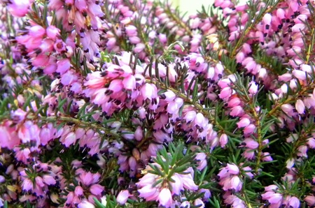 Но есть в этом семействе род с очень красивым названием эрика, многие представители которого спокойно растут на обычной, слегка подкисленной садовой почве с добавлением торфа и песка. Неплохо они удаются даже в непростых условиях средней полосы России. Самый стойкий вид – эрика травянистая, или мясо-красная (румяная). Это вечнозеленый кустарничек высотой до полуметра, с диаметром кроны 0,3–0,4 м. Ярко-зеленые листья напоминают еловые иголочки, расположены по 4 в мутовках. Розовые и красные (иногда белые) цветки по форме напоминают колокольчики, собраны в кистевидные соцветия длиной 3–5 см. В средней полосе России цветут в конце апреля – мае, на юге, а также в Европе – раньше, приблизительно в марте. Плоды – коричневатые мелкие коробочки, созревают в августе-сентябре.