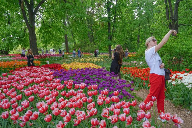 В середине мая — пик цветения 100 тысяч тюльпанов, в конце месяца — громадные пионы, сирень и рододендроны.